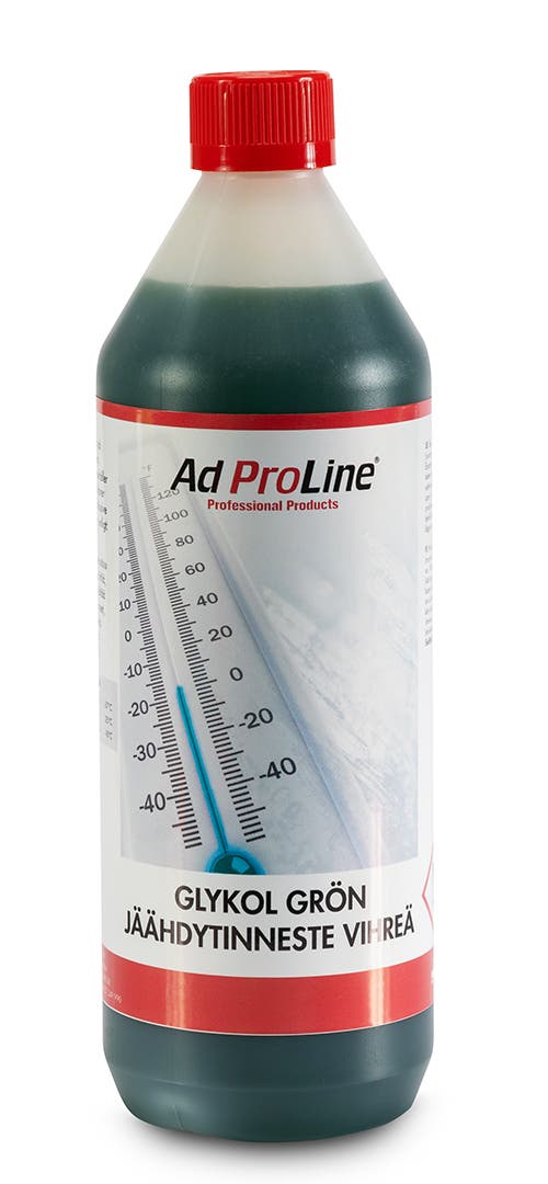 AdProLine® -jäähdytinneste vihreä perustuu monoetyylijäähdytinnesteeseen ja inhibiittoripakettiin ilman nitriittejä, amiineja ja fosfaatteja. Tarkista glykolinjäähdytyssuoja joka syksy ja täytä tarvittaessa. Etyleenijäähdytinneste on myrkyllinen eikä sitä saa nauttia. Se on biohajoava, ja pienet päästöt eivät häiritse puhdistuslaitoksen hajoamisvaiheita.