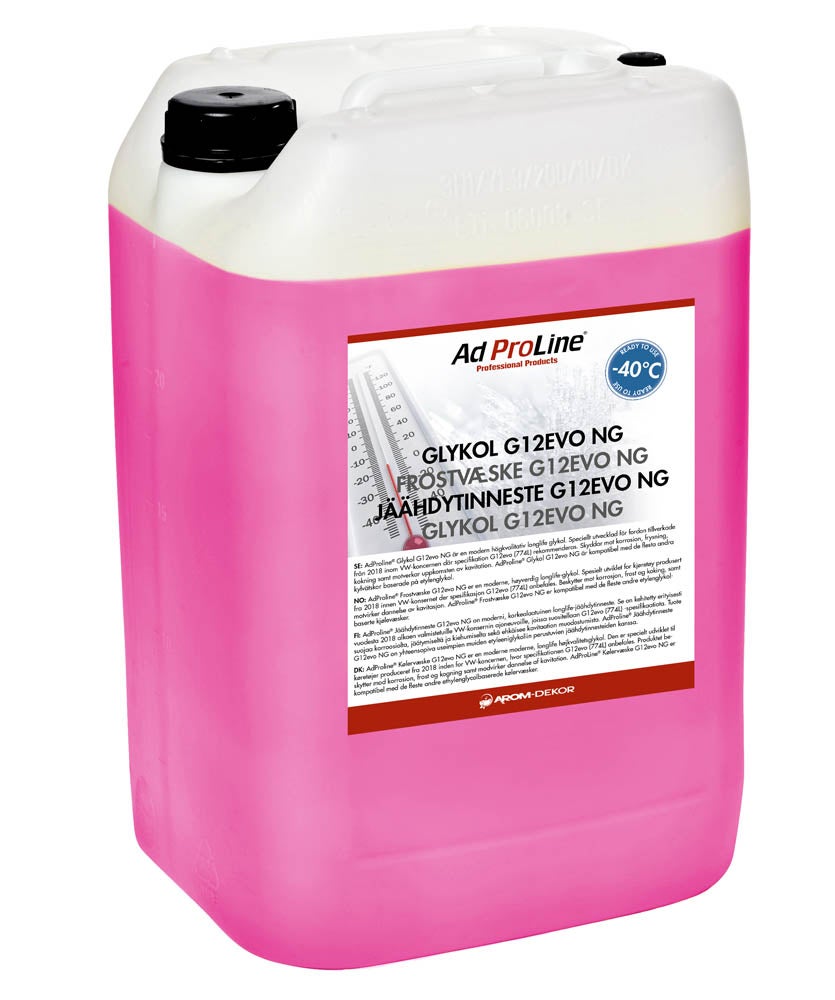 AdProline® Jäähdytinneste G12evo NG on moderni, korkealaatuinen longlife-jäähdytinneste. Se on kehitetty erityisesti vuodesta 2018 alkaen valmistetuille VW-konsernin ajoneuvoille, joissa suositellaan G12evo (774L) -spesifikaatiota. Tuote suojaa korroosiolta, jäätymiseltä ja kiehumiselta sekä ehkäisee kavitaation muodostumista. AdProline® Jäähdytinneste G12evo NG on yhteensopiva useimpien muiden etyleeniglykoliin perustuvien jäähdytinnesteiden kanssa.