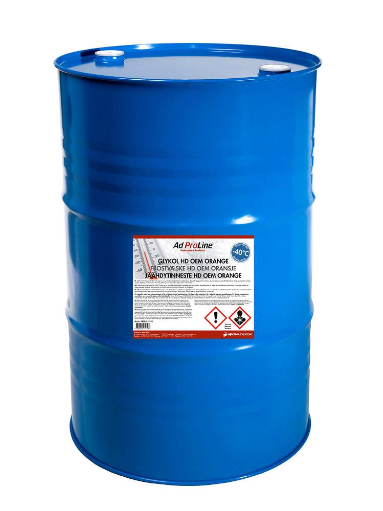 AdProLine® Jäähdytinneste HD OEM Orange koostuu monoetyleeniglykolista jainhibiittoripaketista joka perustuu OAT-tekniikkaan. Tarjoaa erinomaisenkorroosiosuojan useimmille metalleille mukaan lukien alumiinin. Ei sisällä nitriittejä, boraattia tai 2-EHA:ta. Tarkista jäähdytysnesteen taso ja jäätymissuoja jokasyksy ja lisää ainetta tarvittaessa. Etyleenijäähdytinneste on myrkyllistä ja sitä eisaa nauttia. Tuote on biohajoava ja pienet määrät ei aiheuta häiriöitäpuhdistuslaitoksen hajoamisvaiheissa.