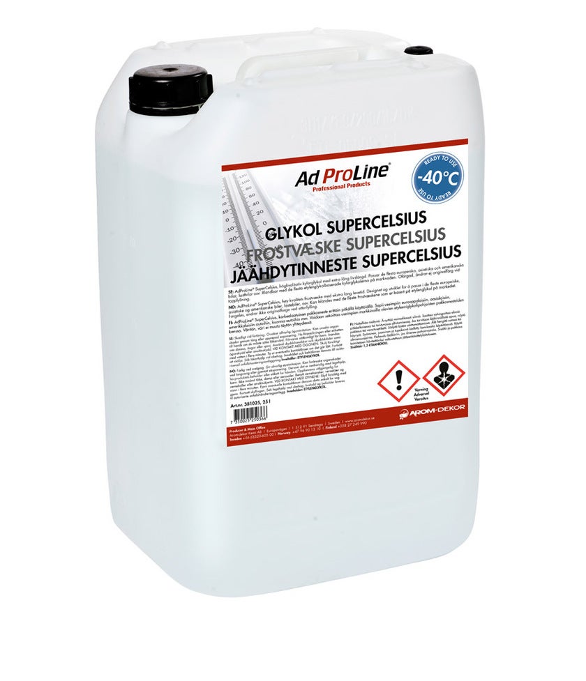 AdProLine® SuperCelsius on korkealaatuinen jäähdytinneste, jolla on erittäin pitkä käyttöikä.SuperCelsius perustuu uuteen inhibiittoripakettiin, jossa on orgaanista happoa. Se on kehitetty ja muotoiltu sopimaan useimpiin eurooppalaisiin, aasialaisiin ja amerikkalaisiin autoihin, kuorma-autoihin jne. Se on sekoitettavissa useimpien muiden markkinoilla olevien etyleeniglykolipohjaisten glykoleiden kanssa. SuperCelsius on väritön eikä muuta alkuperäistä väriä täytettäessä. Se on erityisesti suunniteltu modernien polttomoottoreiden, hybridiautojen ja sähköautojen epäsuorien jäähdytysjärjestelmien käyttöön. Se suojaa korroosiolta, jäätymiseltä, kiehumiselta ja estää kavitaation muodostumista. SuperCelsius on yhteensopiva useimpien muiden etyleeniglykoliin perustuvien jäähdytysnesteiden kanssa.