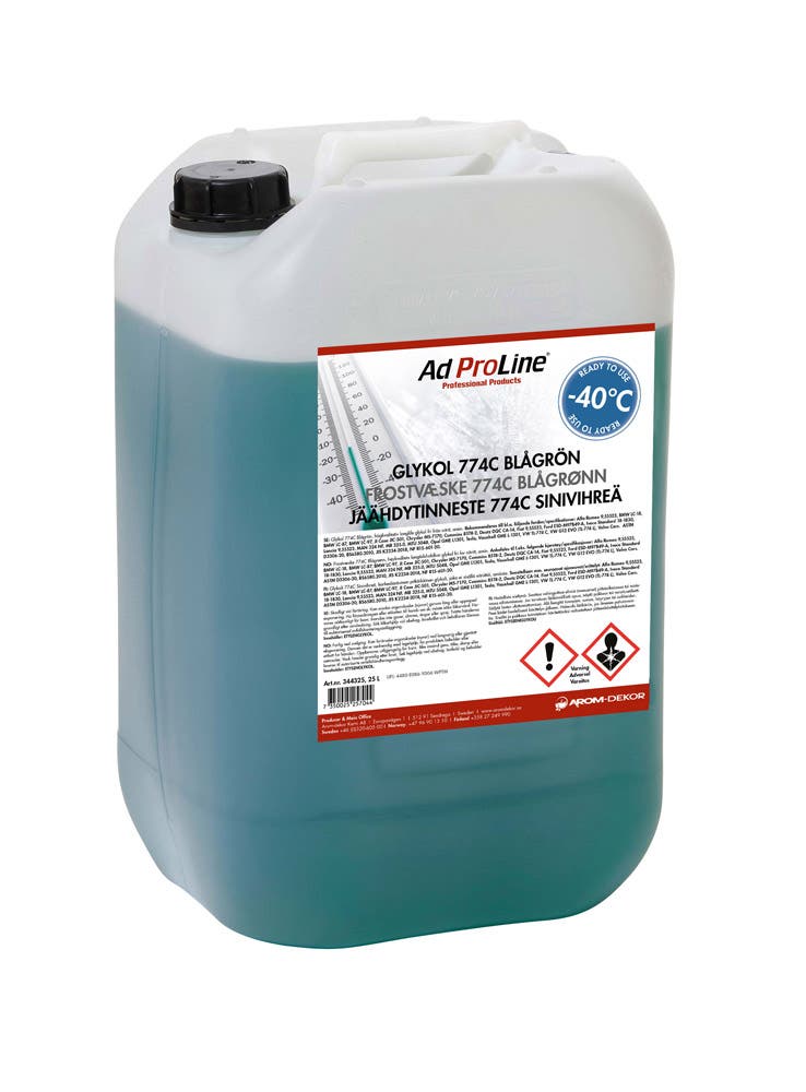 - AdProLine® Jäähdytinneste 774C Sinivihreä on yhteensopiva useimpien muiden etyleeniglykolipohjaisten jäähdytysnesteiden kanssa