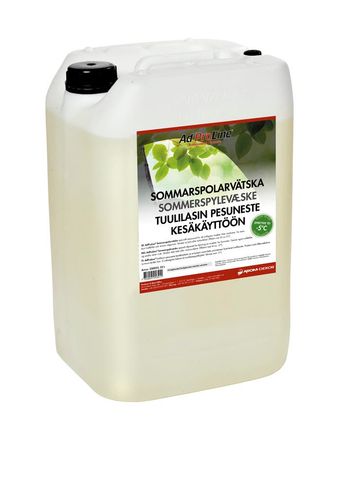 AdProLine® tuulilasin pesuneste kesäkäyttöön tarkoin valittuihin raaka-aineisiin laadun ja tuulilasin maksimaalisen puhdistuksen varmistamiseksi. Etanoli on denaturoitu nykyisten eurooppalaisten standardien mukaisesti, ja se suojaa jäätymiseltä vähintään -5 °C:een asti. Tuote on biohajoava.