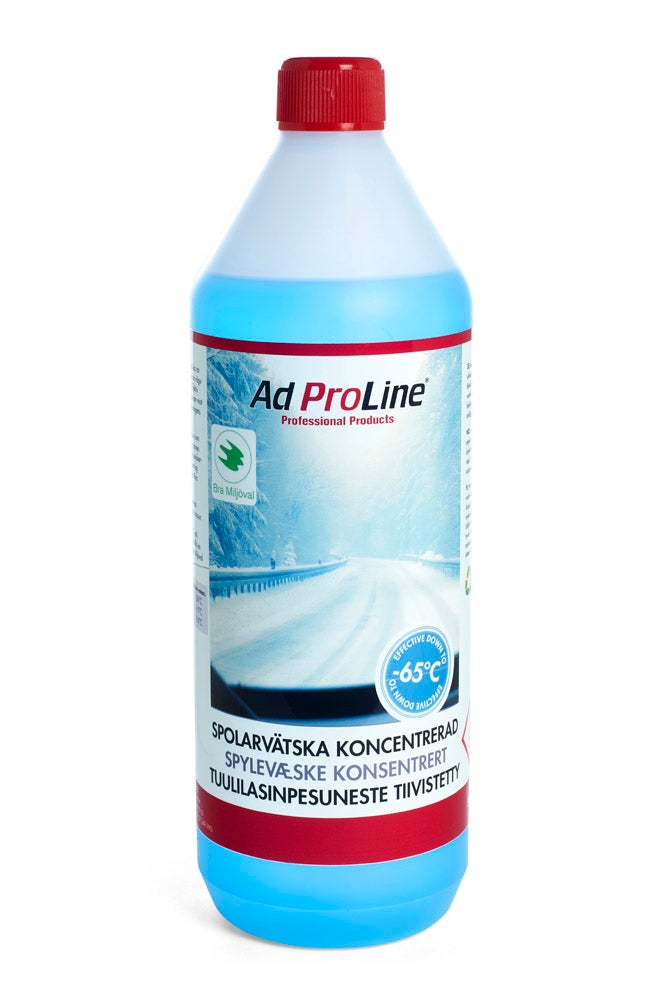 AdProLine® tuulilasin pesuneste tiiviste tarjoaa erinomaisen jäätymissuojan talvikuukausina. Saat tehokkaan jäätymissuojan aina -65 °C:een asti. Jäätymissuojaa voi säätää laimennussuhdetta säätämällä. AdProLine® tuulilasin pesuneste tiiviste on merkitty Hyvä ympäristövalinta -merkinnällä. Oikein laimennettuna pesuneste on tehokas ja kustannustehokas tuote liuottamaan likaa, tiesuolaa ja liikennekalvoja tuulilasista ja ajovaloista. Se on hellävarainen maalille, pyyhkijänsulille, listoille ja muille auton osille.