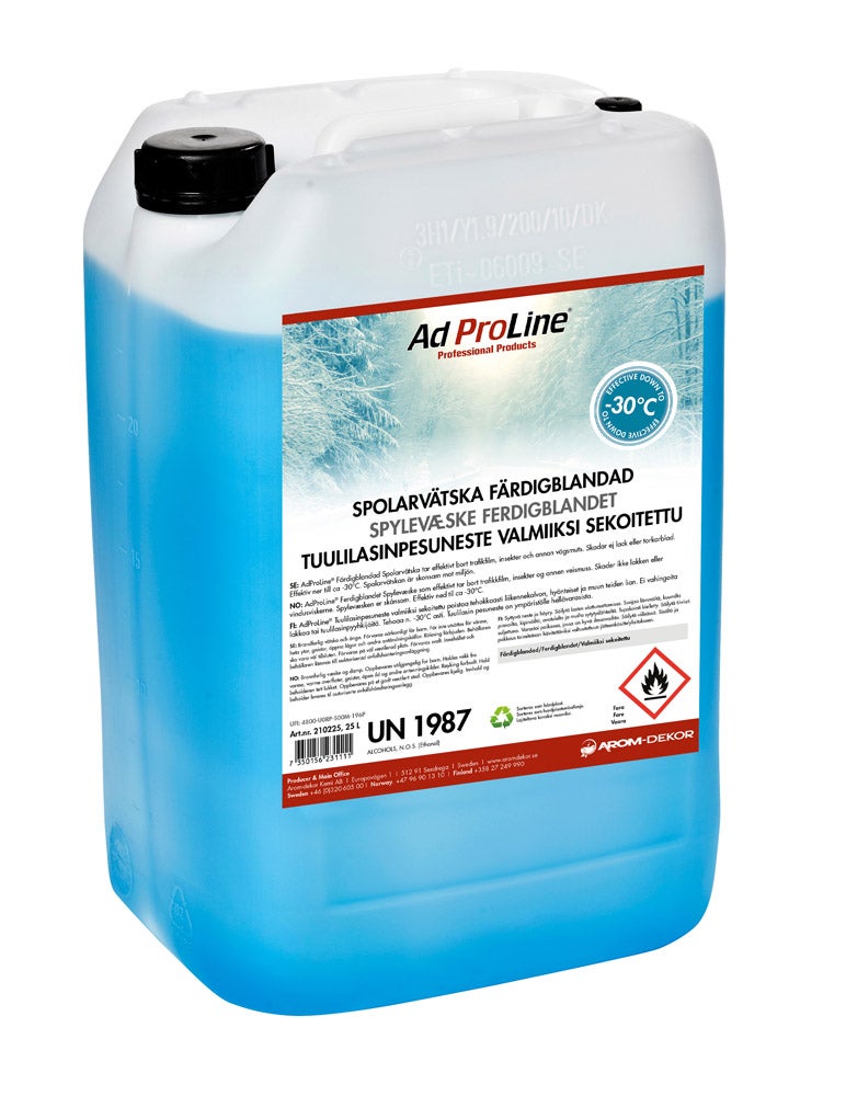 AdProLine® tuulilasinpesuneste valmiiksi sekoitettut perustuvat tarkoin valittuihin raaka-aineisiin laadun ja maksimaalisen puhdistustehon varmistamiseksi. Etanoli denaturoidaan nykyisten eurooppalaisten standardien mukaisesti, mikä takaa laadun jäätymissuojan, tuoksun ja puhdistustehon osalta. Käyttövalmis pesunesteemme sisältää tehokkaan tensidipaketin maksimaalista puhdistusta varten. Käyttövalmiina seoksena neste on helposti syttyvää. Tuote on biohajoava.