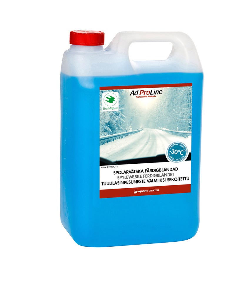 AdProLine®:n valmiiksi sekoitettu tuulilasinpesuneste on ympäristömerkitty Hyvä ympäristövalinta -merkillä ja se on ympärivuotinen pesuneste, joka on jäätymissuojattu -18 °C saakka. Valmiiksi sekoitettu AdProLine® tuulilasinpesuneste liuottaa tehokkaasti likaa, tiesuolaa ja liikennekalvoja tuulilasista ja ajovaloista. Käyttövalmiin pesunesteen voit täyttää suoraan säiliöön ilman, että sinun tarvitsee miettiä sen sekoittamista. Näin se on helppo täyttää tien päällä. Pesunesteemme on hellävarainen maalia, pyyhkijänsulkia, listoja ja muita auton osia kohtaan.