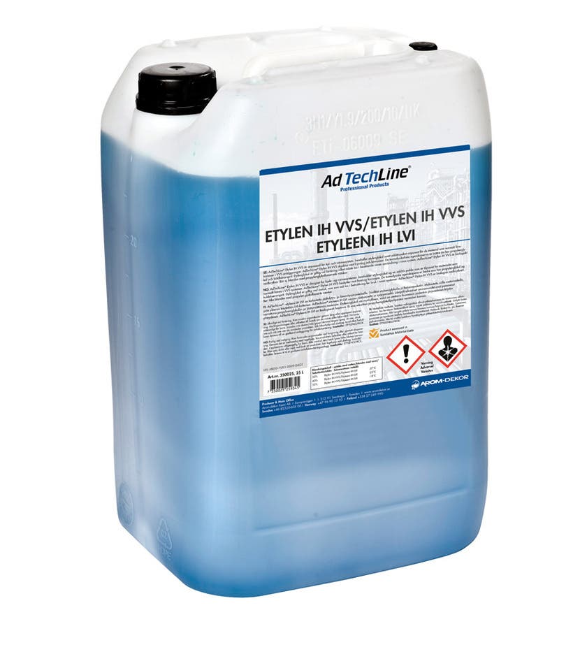 AdTechLine® Etyleeni IH LVI perustuu etyleeniglykoliin ja sitä suositellaan käytettäväksi jäähdytys- ja lämmitysjärjestelmissä. Estää jäätymisen ja sisältää korroosiosuojaa antavia inhibiittoreita.