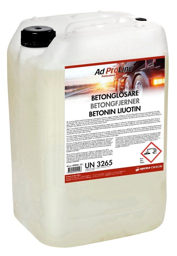 AdProLine® betoniliuotin on erittäin tehokas keino poistaa betonijäämiä ajoneuvoista, laitteista, työkaluista, seinistä ja muusta. AdProLine®-betoniliuotin on huomattavasti vähemmän aggressiivinen ja syövyttävä kuin perinteiset hapot. Pystyy myös liuottamaan paksut betonijäämäkerrokset.