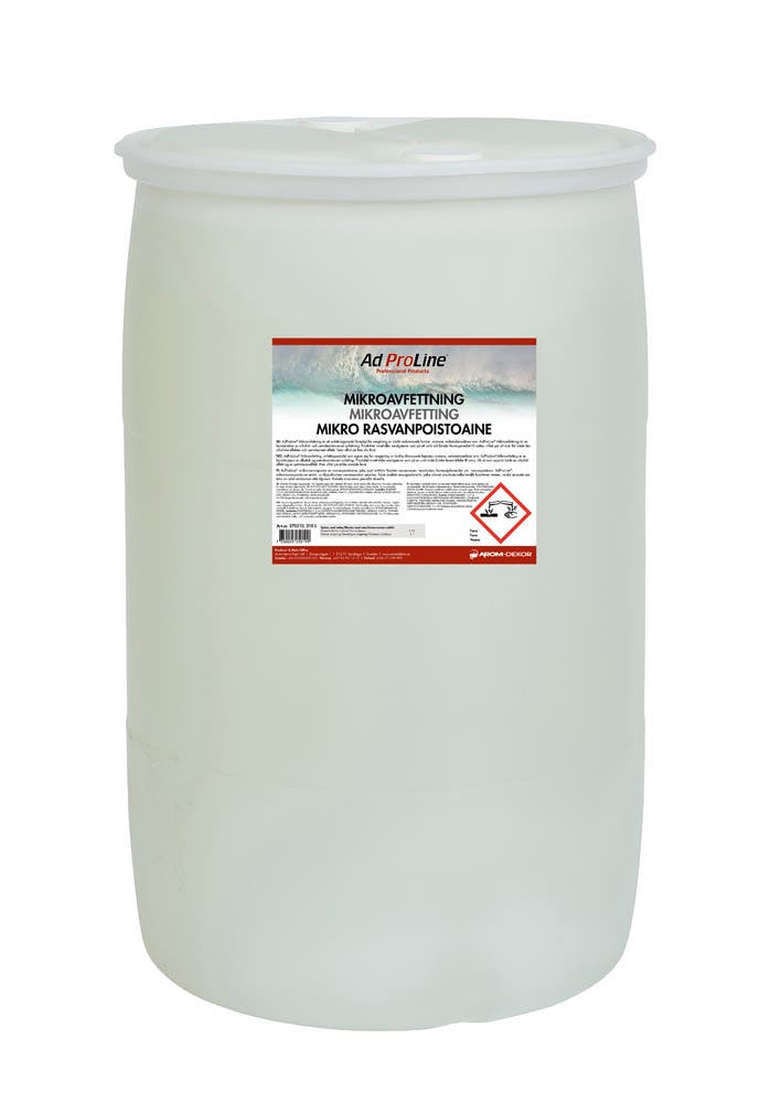 AdProLine® mikrorasvanpoistoaine on rasvanpoistoaine, joka soveltuu voimakkaasti likaantuneiden ajoneuvojen, moottoreiden, korjaamokoneiden tai vastaavien puhdistukseen. AdProLine® mikrorasvanpoistoaine on emäksisen ja öljypohjaisen rasvanpoistoaineen yhdistelmä.