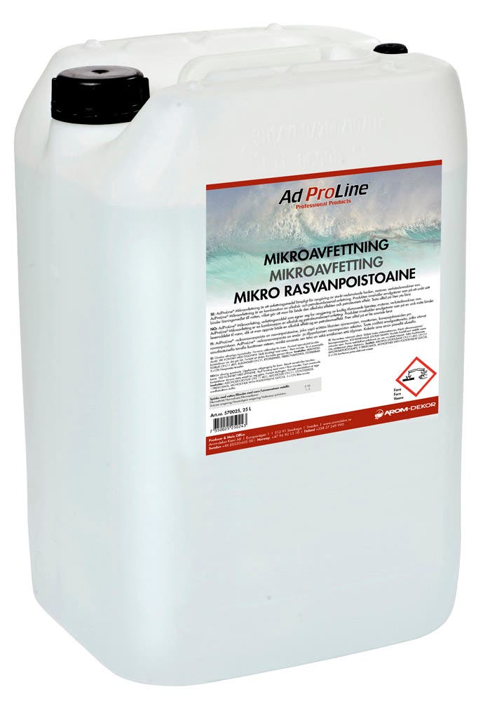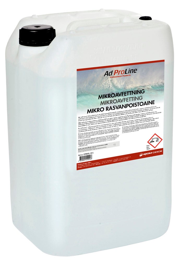AdProLine® mikrorasvanpoistoaine on rasvanpoistoaine, joka soveltuu voimakkaasti likaantuneiden ajoneuvojen, moottoreiden, korjaamokoneiden tai vastaavien puhdistukseen. AdProLine® mikrorasvanpoistoaine on emäksisen ja öljypohjaisen rasvanpoistoaineen yhdistelmä.
