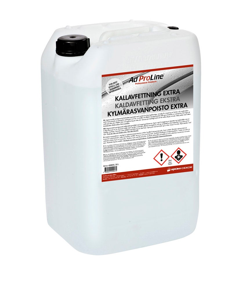 AdProLine® Extra kylmärasvanpoistoaine on matala-aromaattinen emulgoiva kylmärasvanpoistoaine, jolla on erittäin hyvä liuotuskyky. Tuotteessa on lisäaineita, jotka lisäävät vaikutusta ja tekevät tuotteesta nopeavaikutteisemman kuin muut matala-aromaattiset kylmärasvanpoistoaineet. Soveltuu esim. asfaltin, tervan, rasva ja vastaavien saastuttamien ajoneuvojen ja koneiden osien puhdistukseen. AdProLine® Extra kylmärasvanpoistoaine sisältää tehokkaan emulgointiainepaketin, joka antaa tuotteelle erittäin hyvän kyvyn kastella erilaisia pintoja ja parantaa siten huomattavasti liuotuskykyä.