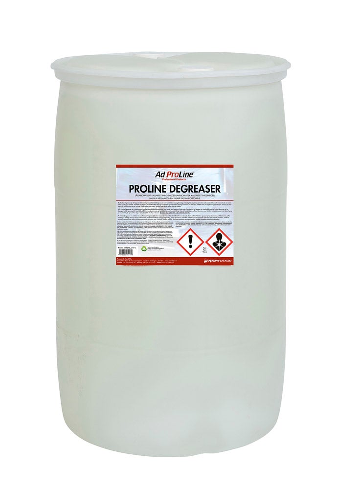 Proline Degreaser on matala-aromaattinen emulgoiva kylmärasvanpoistoaine, jolla on erittäin hyvä liuotuskyky. Soveltuu esim. asfaltin, tervan ja rasvan likaamien ajoneuvojen ja koneiden osien puhdistukseen. Sisältää tehokkaan emulgaattoripaketin, joka ansiosta tuote toimii erittäin hyvin erilaisilla pinnoilla. Tehokas myös märille pinnoille levitettynä. Tuote on matala-aromaattinen, eli sillä on vähäinen ominaishaju, mikä parantaa käyttäjän työympäristöä. Täyttää Kemikaliesvepet-vaatimukset.
