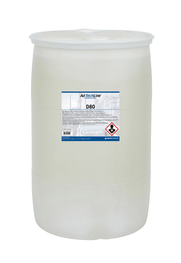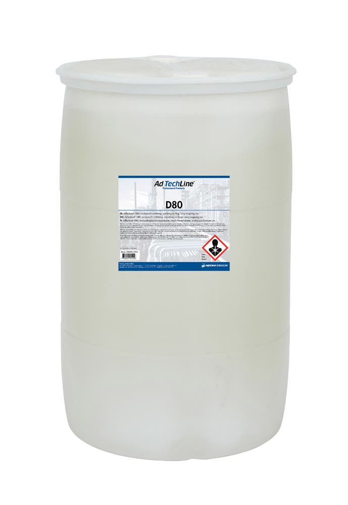 AdTechLine® D80, hitaasti haihtuva aromaattivapaa hiilivetyliuotin, maalin laimennukseen ja muuhun puhdistukseen esim. moottorin ja auton pesuun ym. Voidaan käyttää myös esim. allaspesussa.